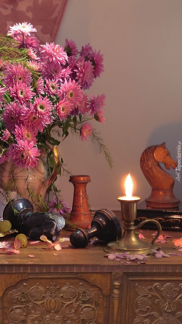 Edytor tapety: Chryzantemy obok zapalonej świecy