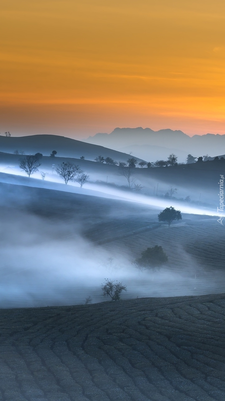 Edytor tapety: Pole herbaty we mgle