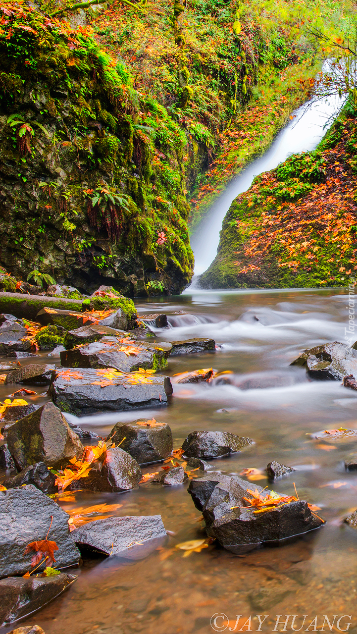 Edytor tapety: Kamienie w rzece obok wodospadu