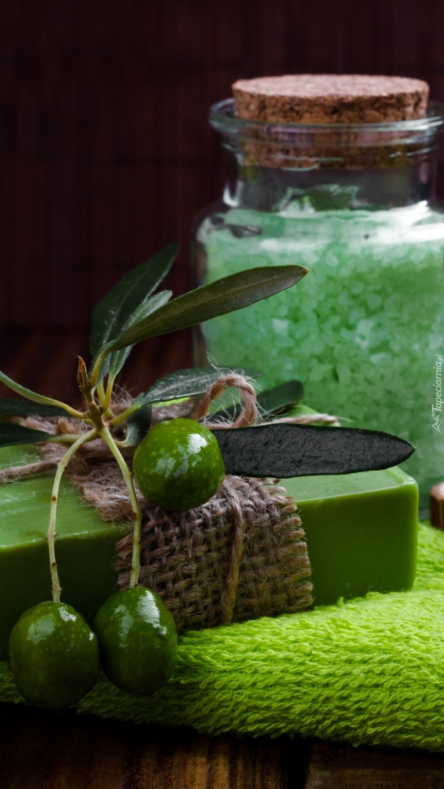 Edytor tapety: Oliwkowe mydło na ręczniku