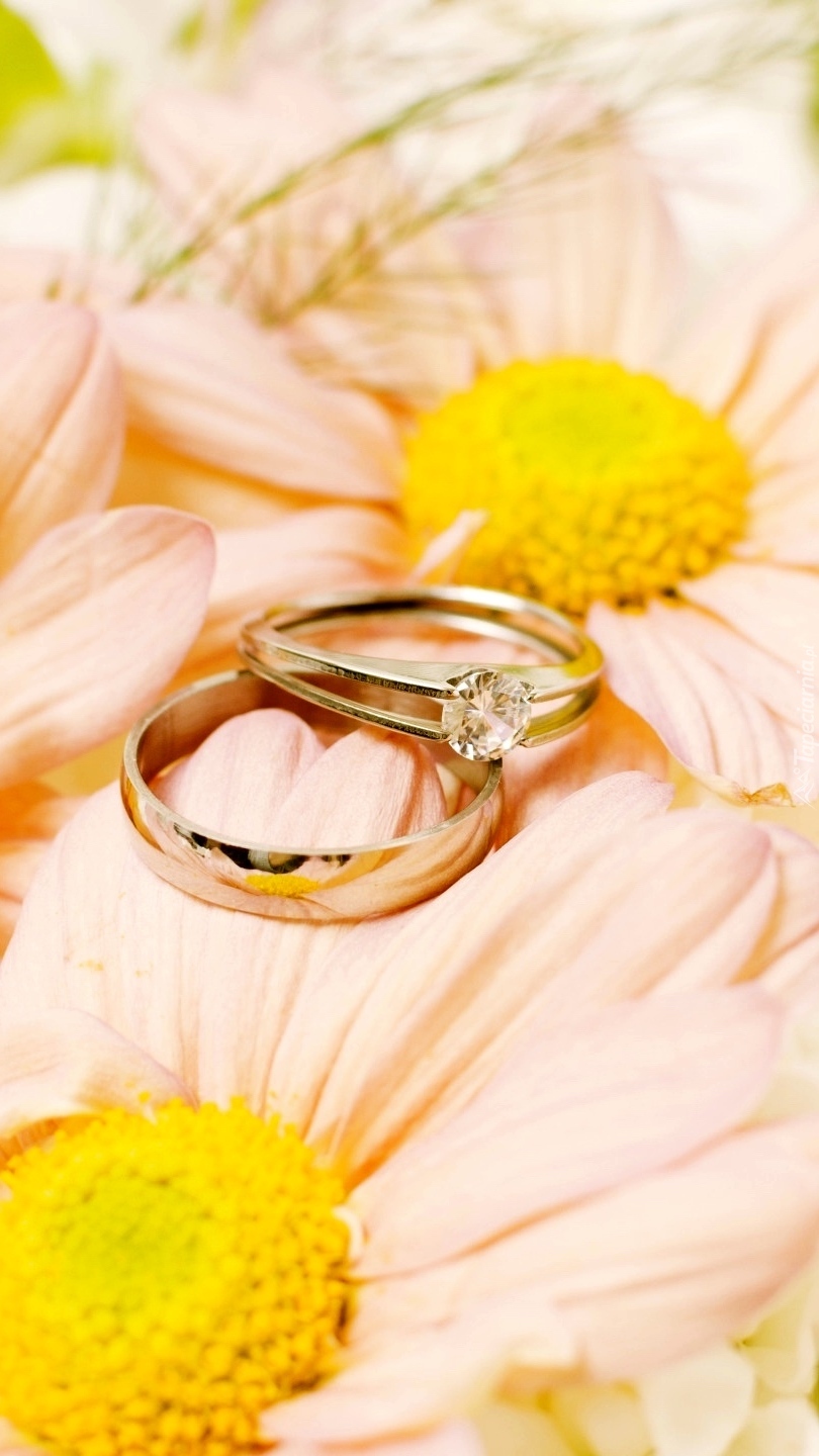 Edytor tapety: Obrączka z pierścionkiem na kwiatach