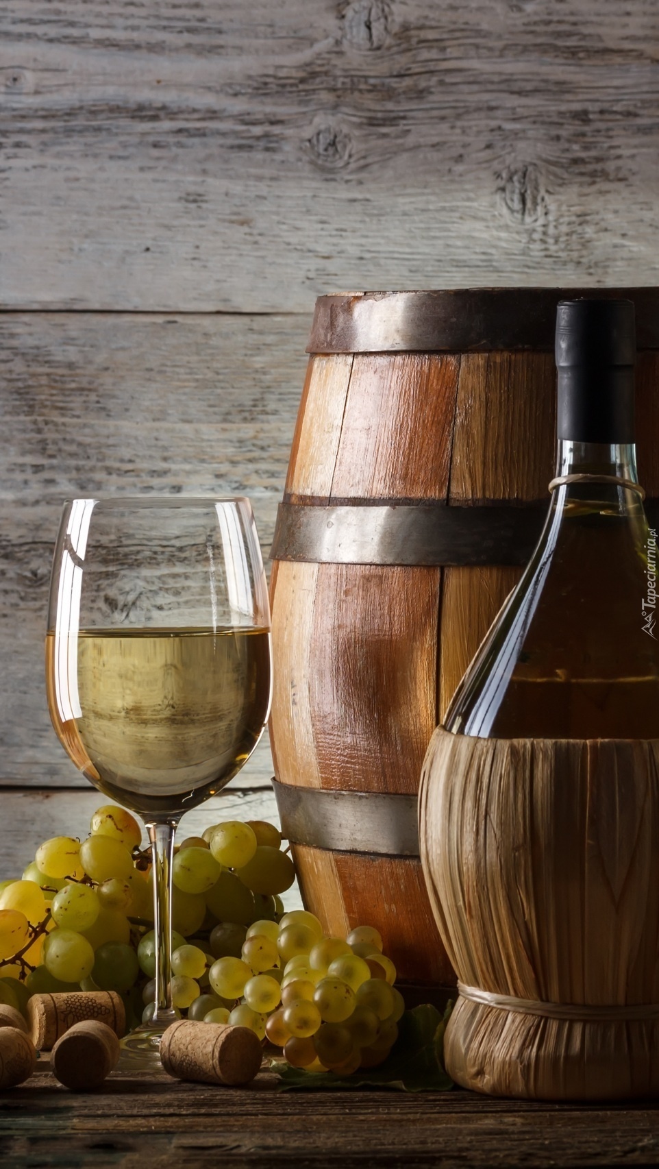 Edytor tapety: Wino w butelce antałku i kieliszku