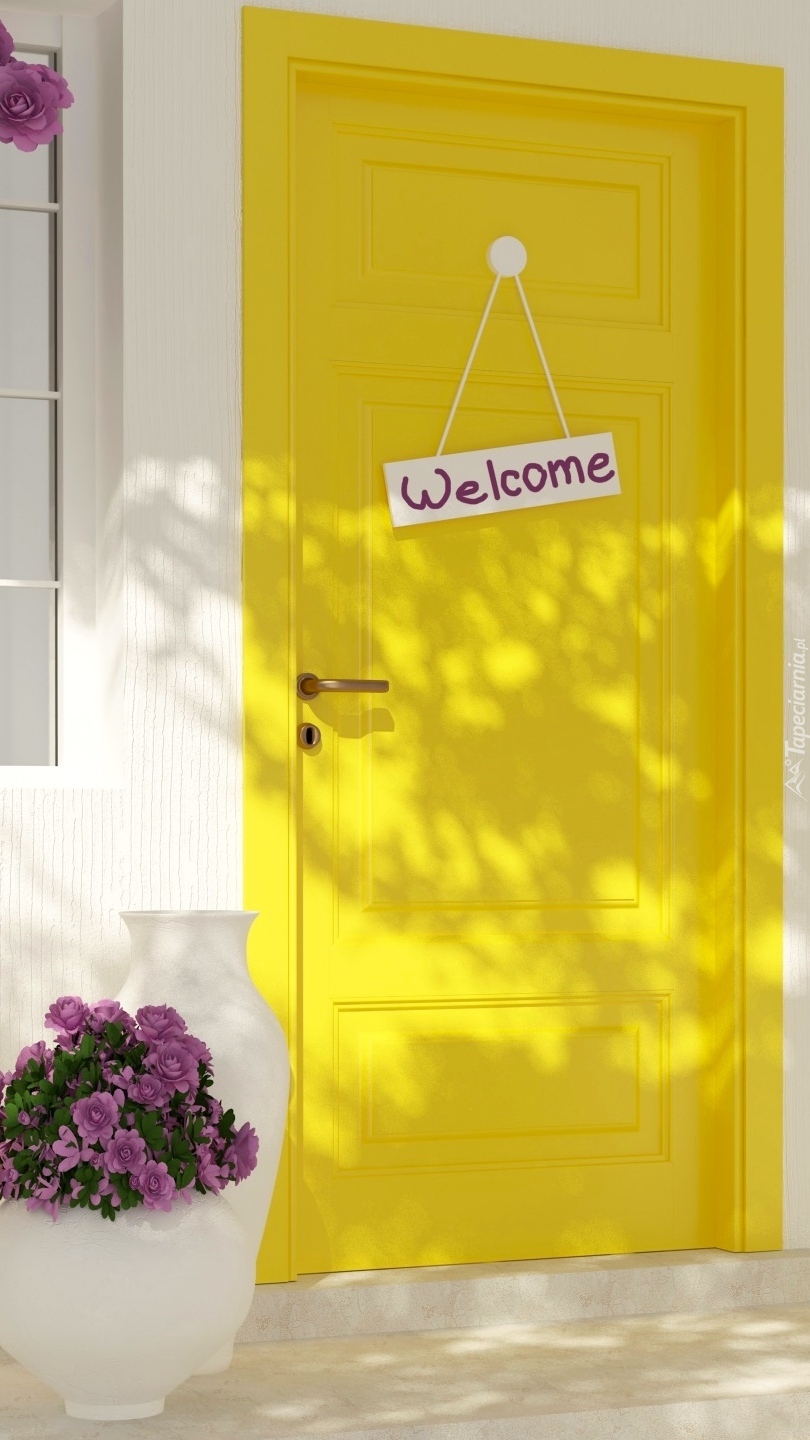Edytor tapety: Żółte drzwi z tabliczką welcome
