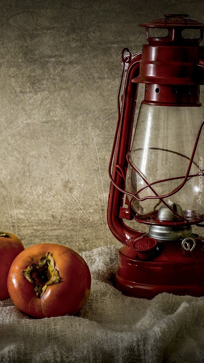 Edytor tapety: Persymony obok lampy naftowej