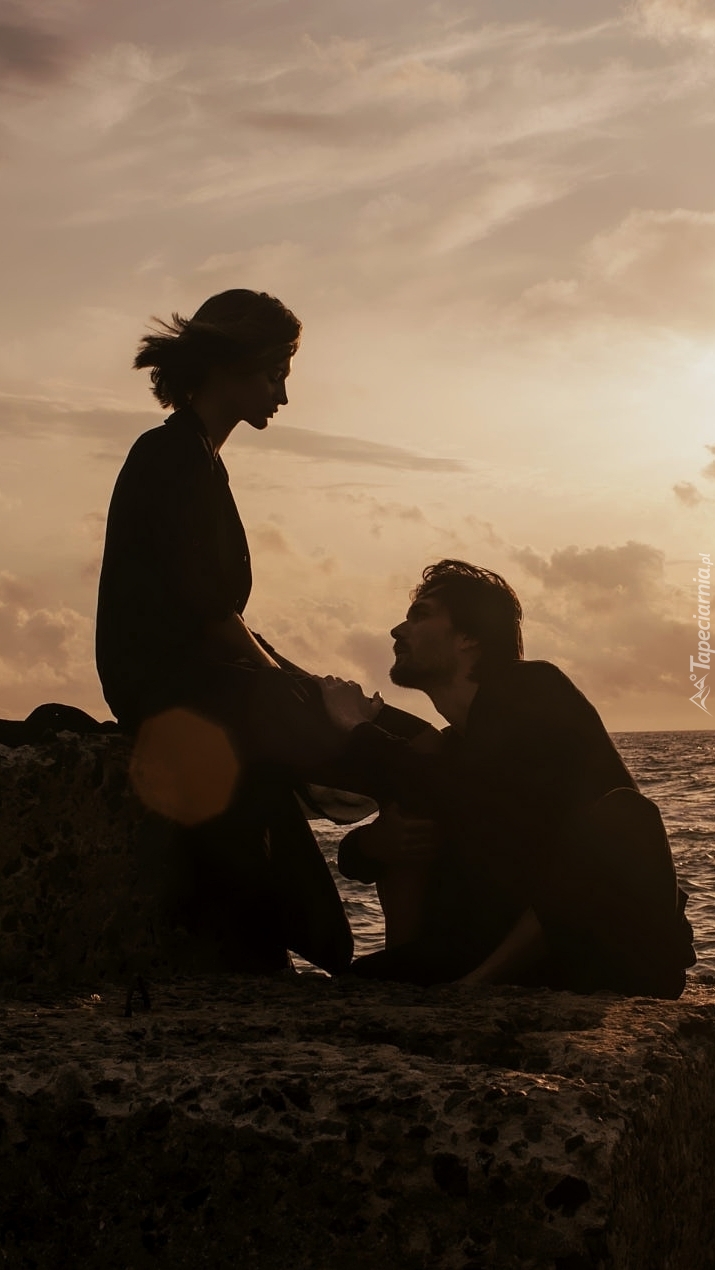 Edytor tapety: Kobieta i mężczyzna na skale