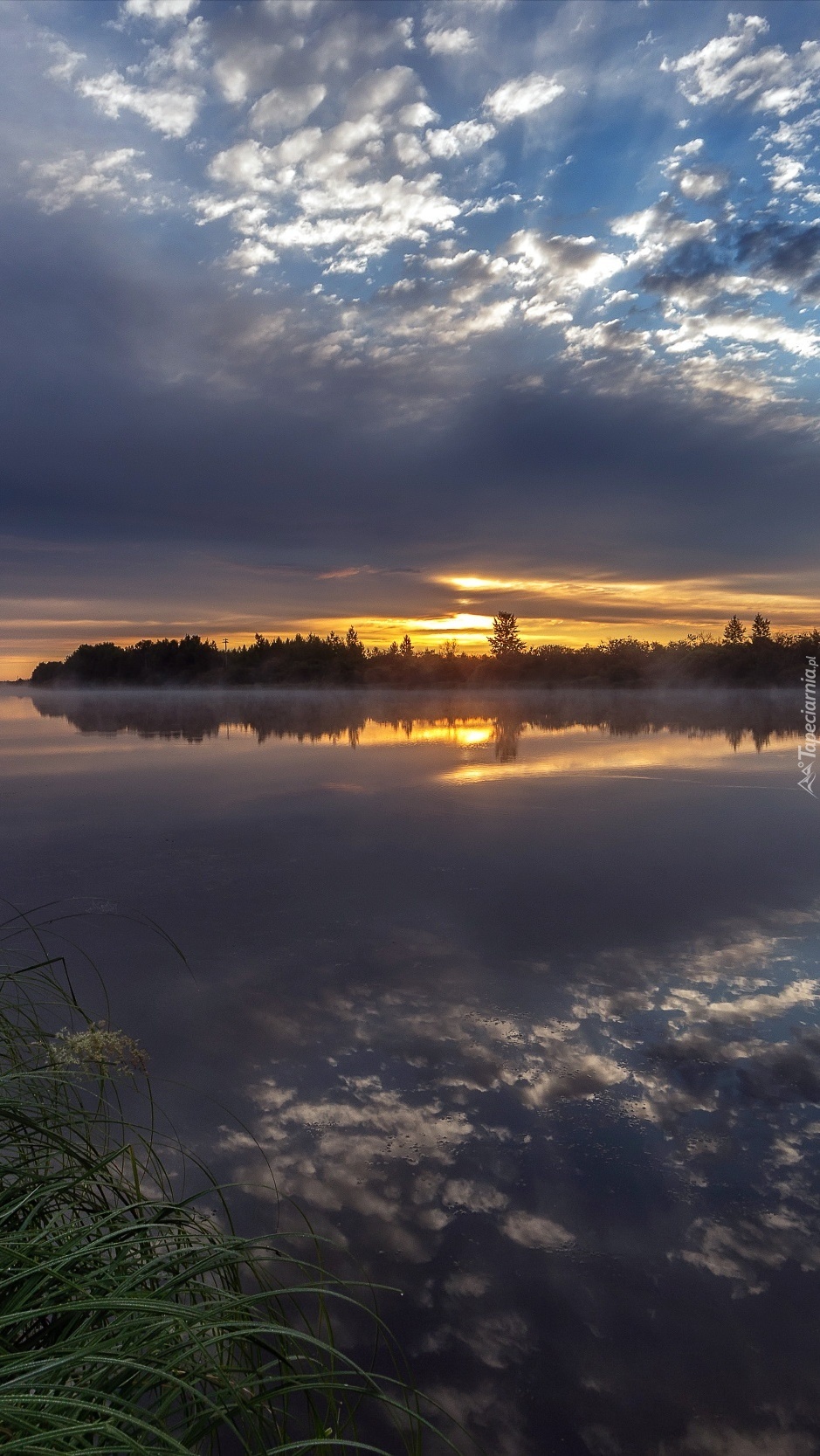 Edytor tapety: Pochmurny wschód słońca nad rzeką