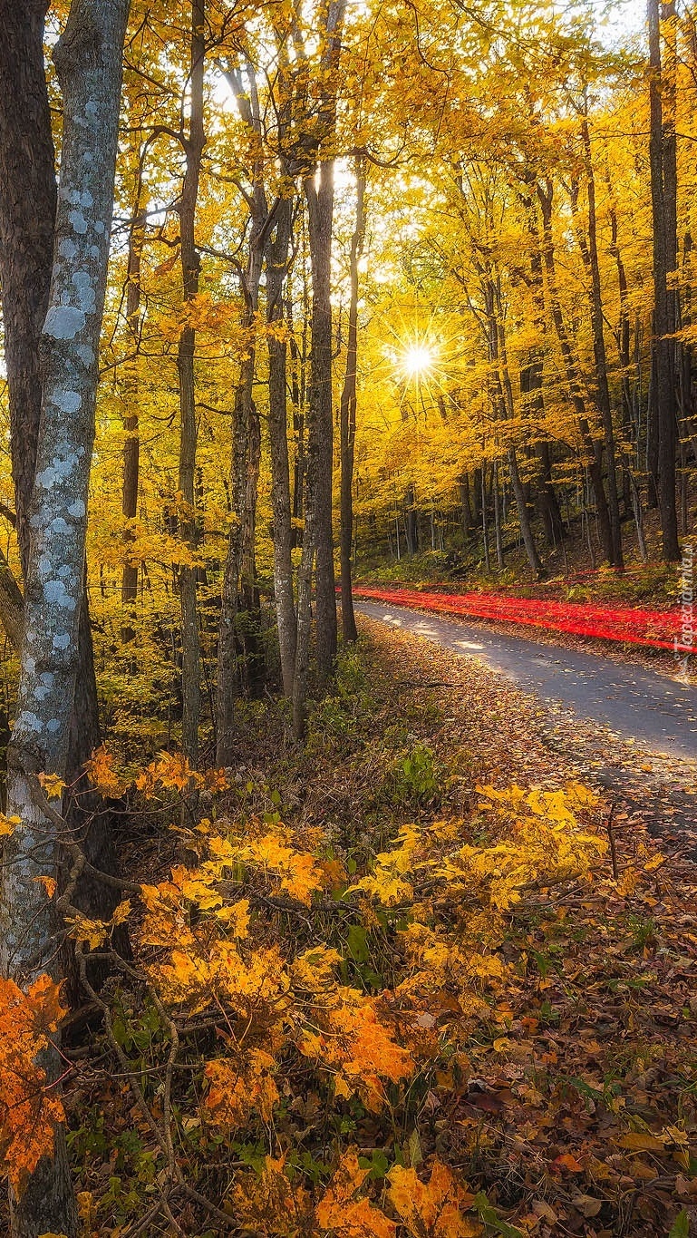 Edytor tapety: Opadłe liście przy drodze w lesie