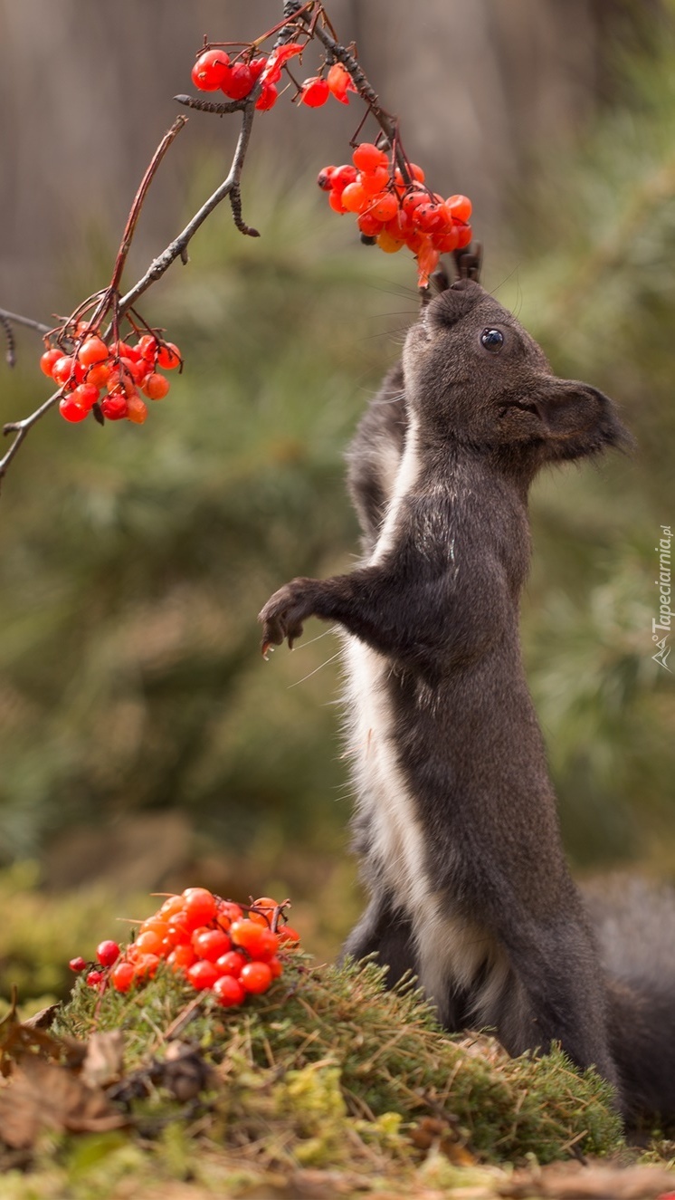 Edytor tapety: Wiewiórka przy gałązce czerwonych jagód