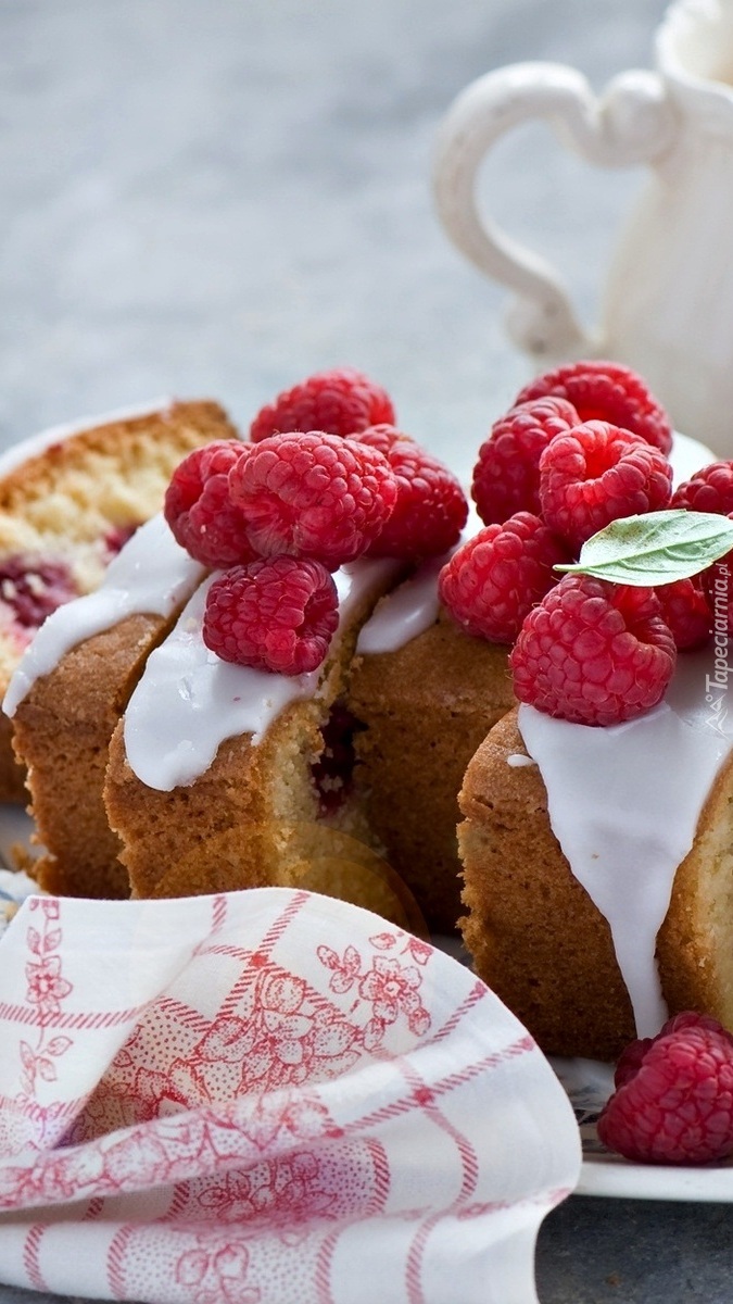 Edytor tapety: Ściereczka obok ciasta z malinami
