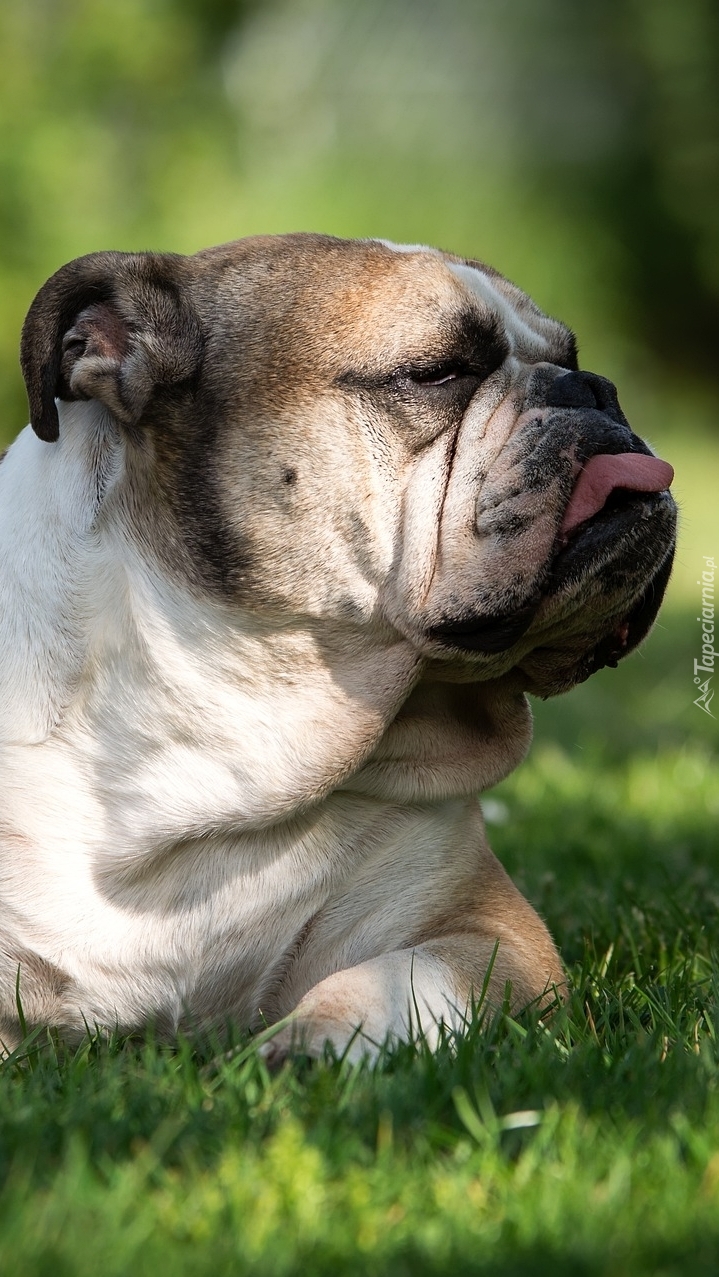 Edytor tapety: Buldog angielski z wystawionym językiem