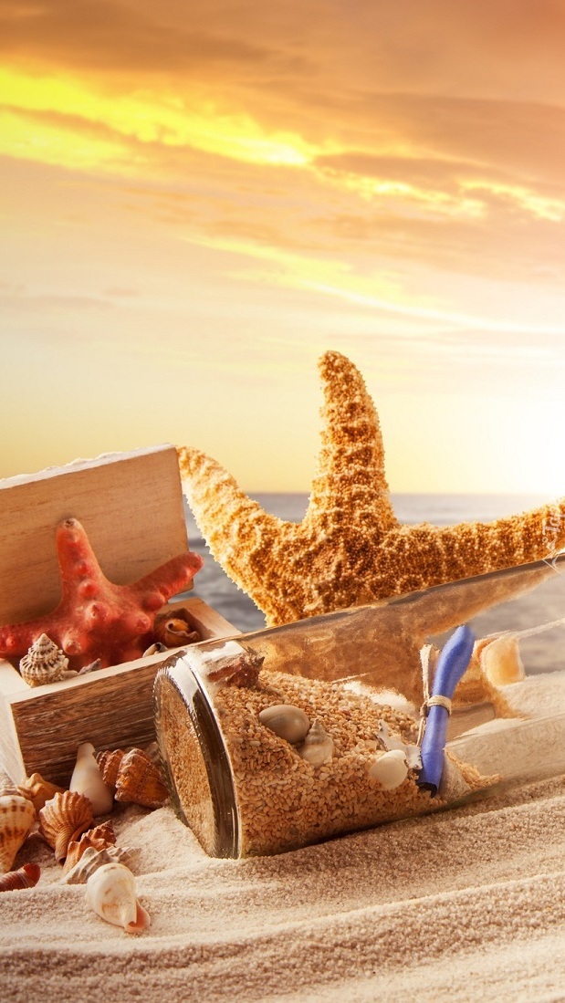 Edytor tapety: Rozgwiazdy i muszelki na piasku