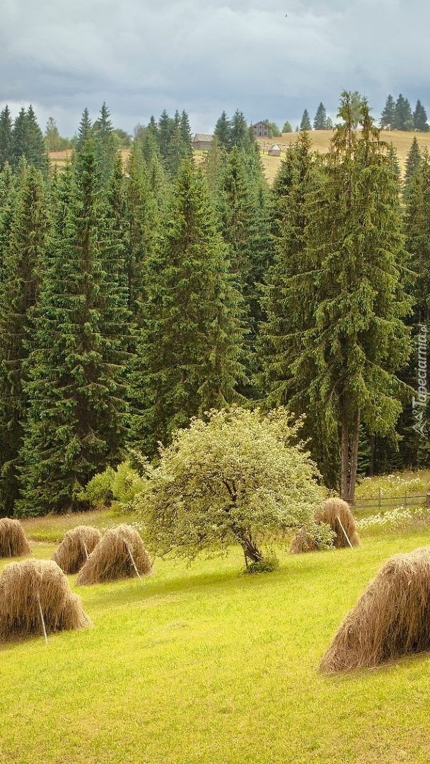 Edytor tapety: Siano na ostwiach na polanie
