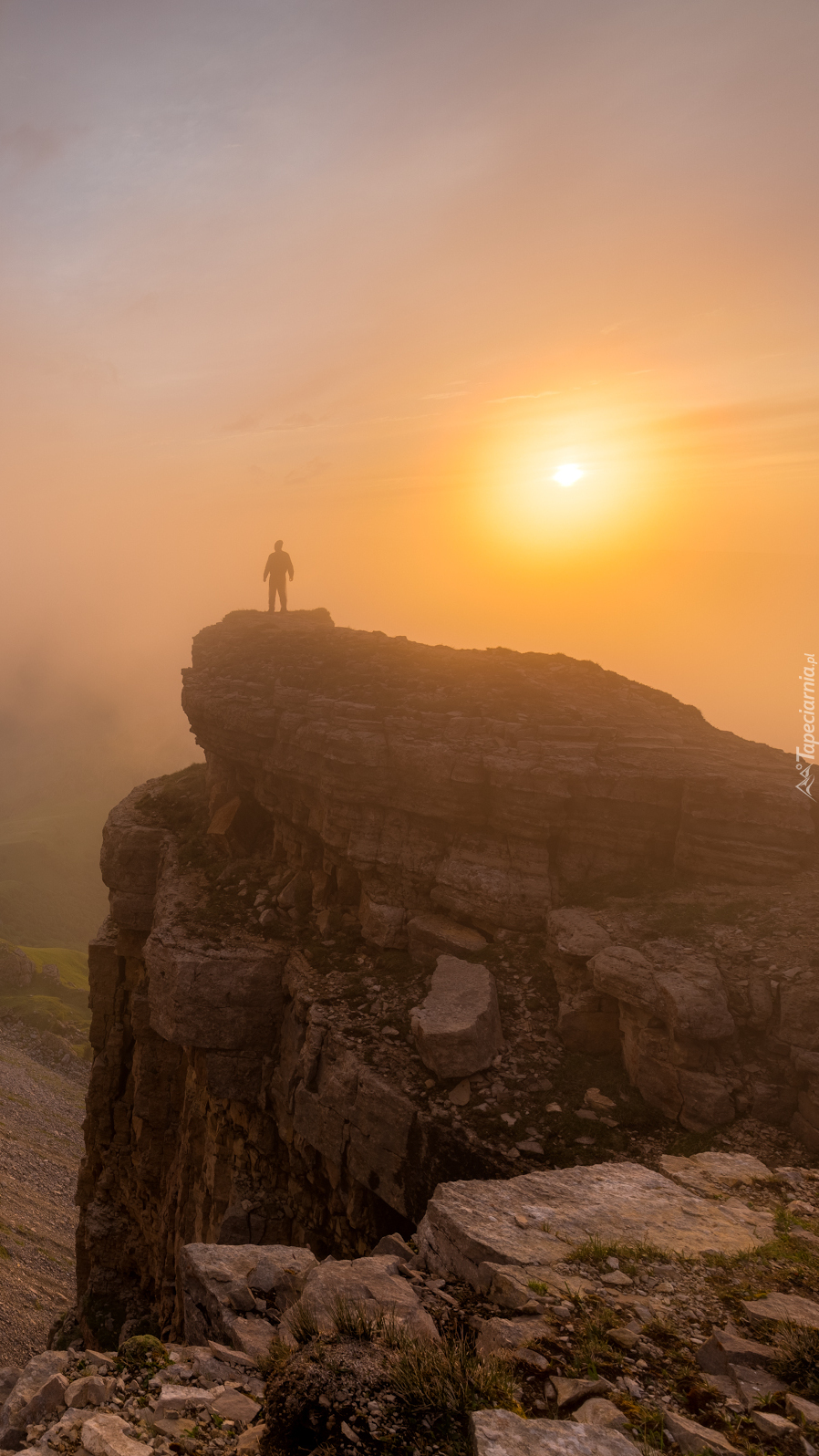 Edytor tapety: Człowiek na zamglonej skale