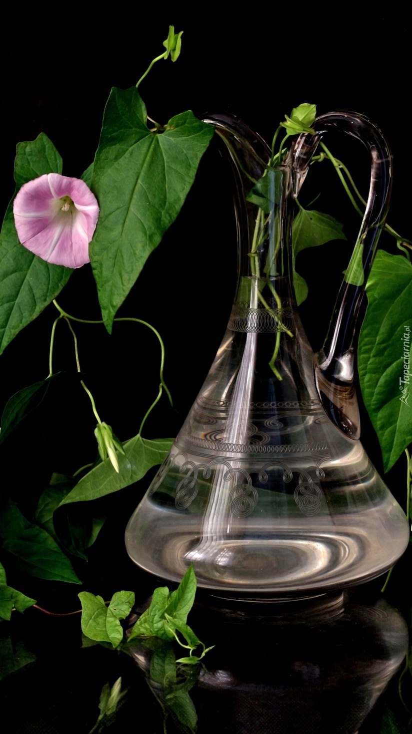 Edytor tapety: Powój z liśćmi w szklanym dzbanku
