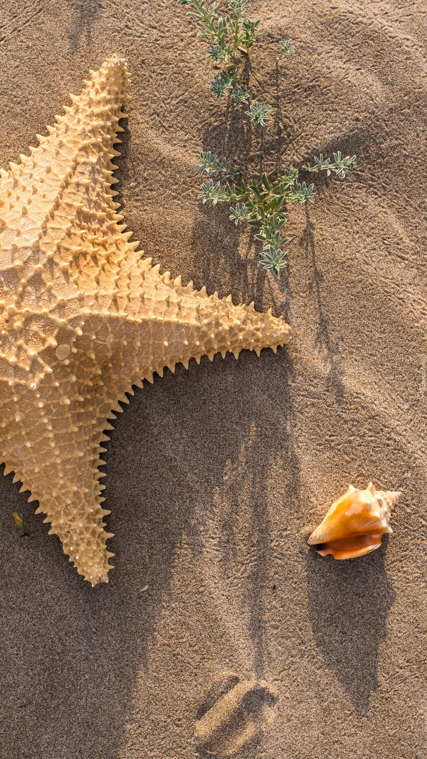 Edytor tapety: Rozgwiazda i muszelka na piasku