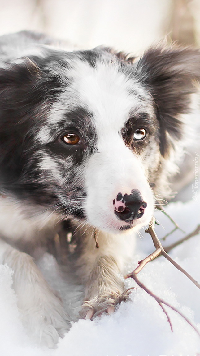 Edytor tapety: Border collie na śniegu