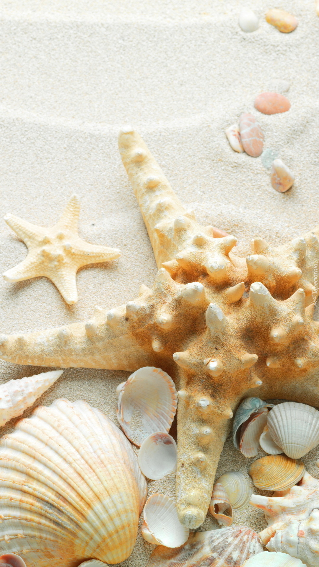 Edytor tapety: Rozgwiazda z muszelkami na piasku