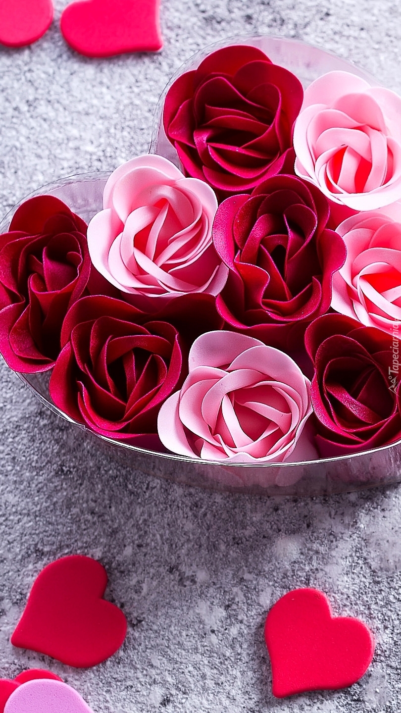 Edytor tapety: Pudełko w kształcie serca z różami