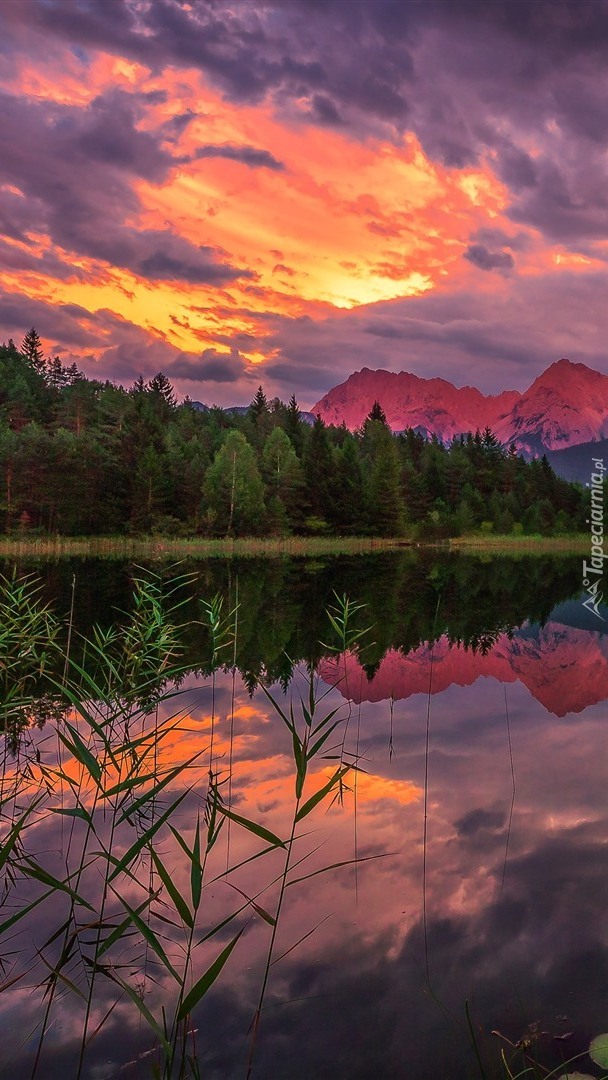 Edytor tapety: Zachodzące słońce nad jeziorem