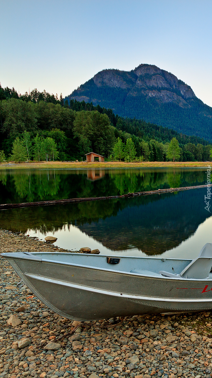 Edytor tapety: Motorówka na brzegu jeziora