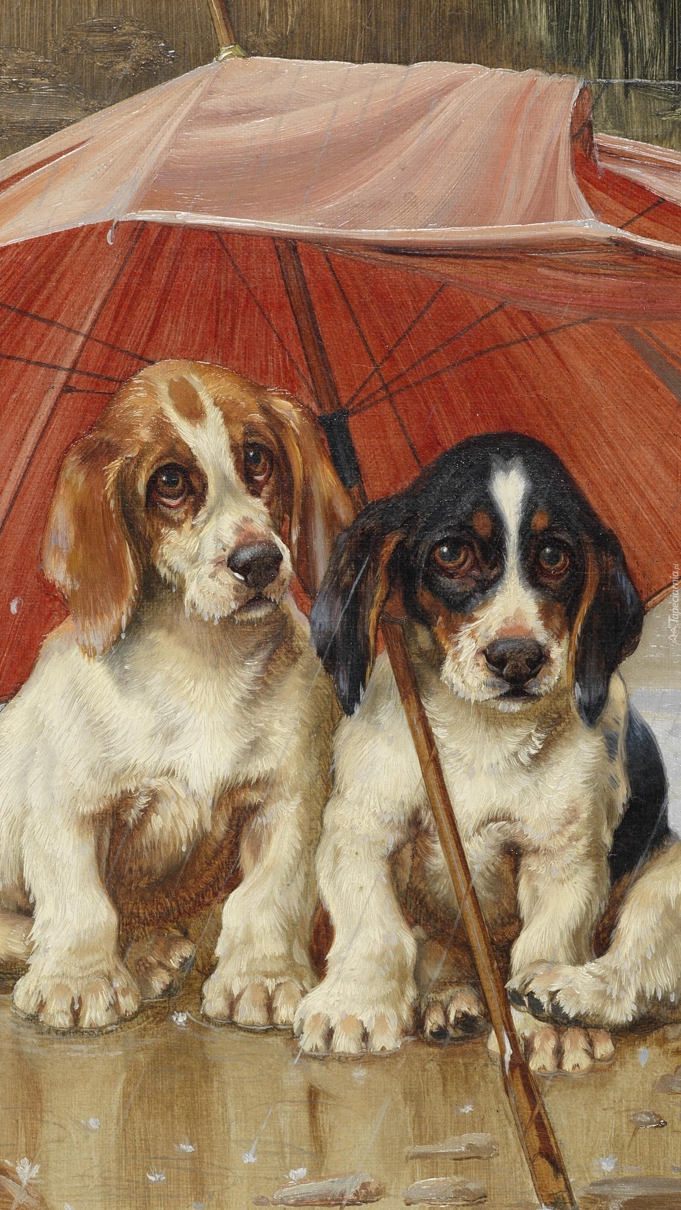 Edytor tapety: Dwa psy pod parasolem
