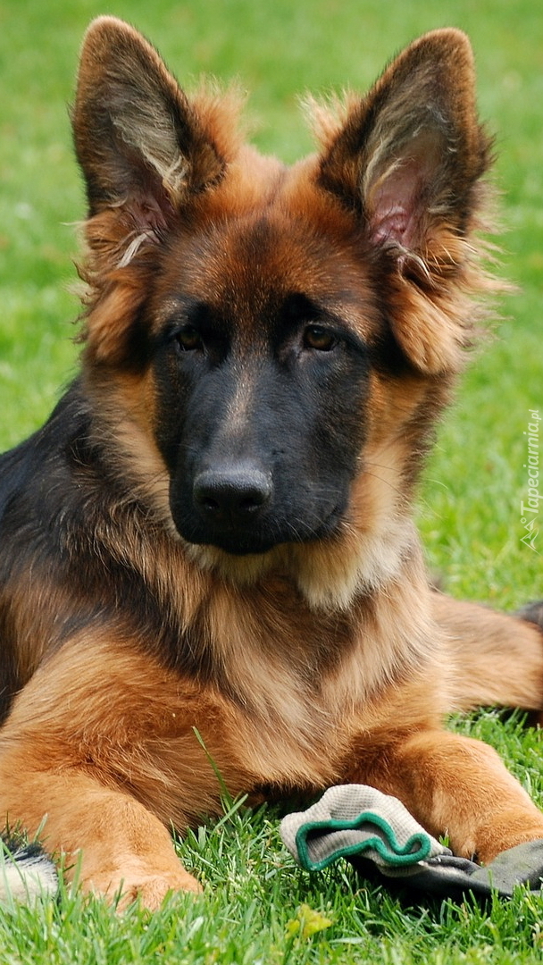 Edytor tapety: Szczeniak owczarka niemieckiego na trawie