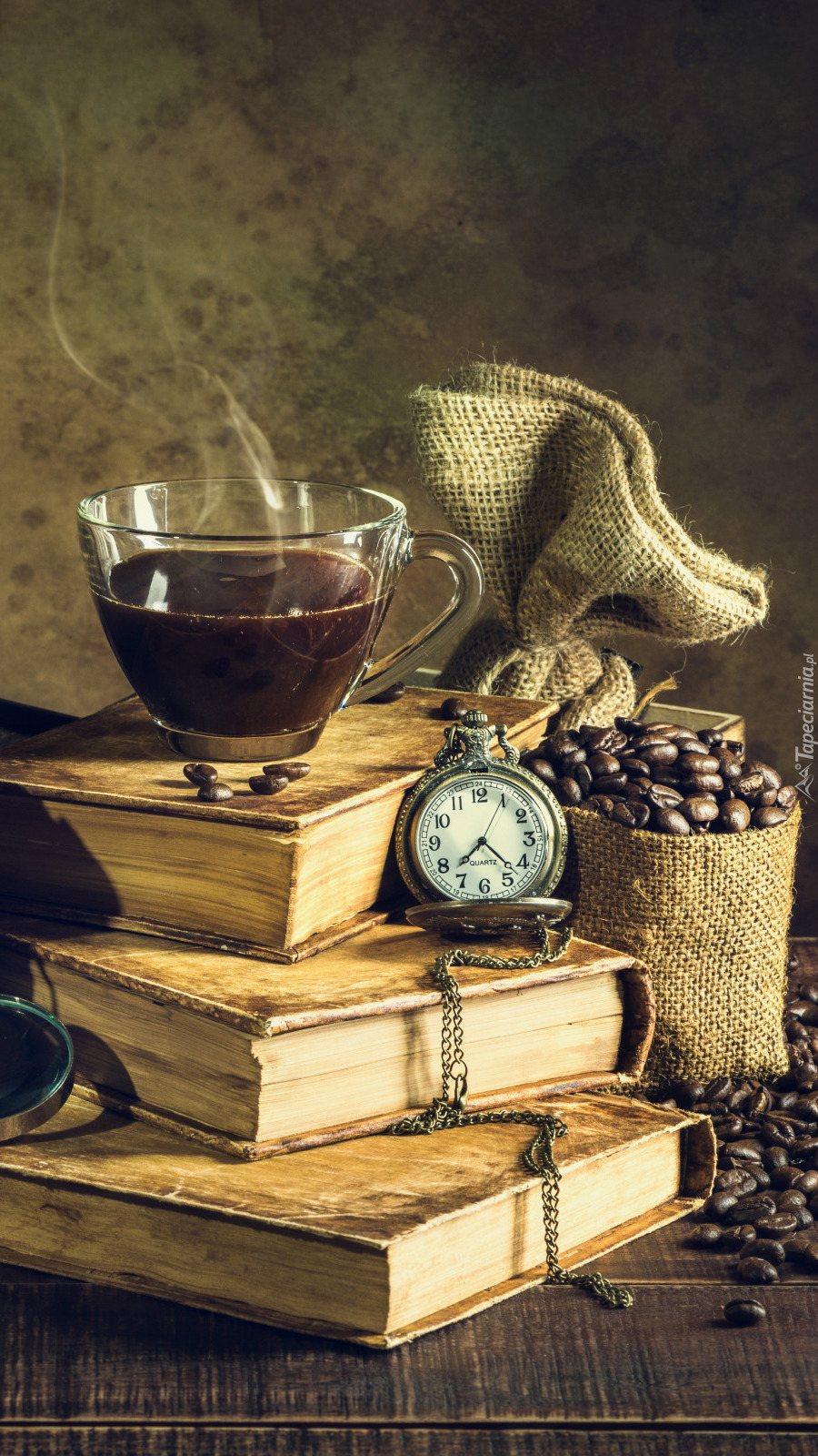 Edytor tapety: Zegarek i kawa na książkach
