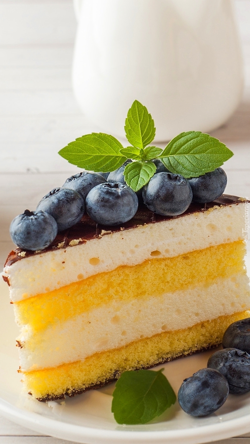 Edytor tapety: Biszkoptowe ciasto z pianką i jagodami