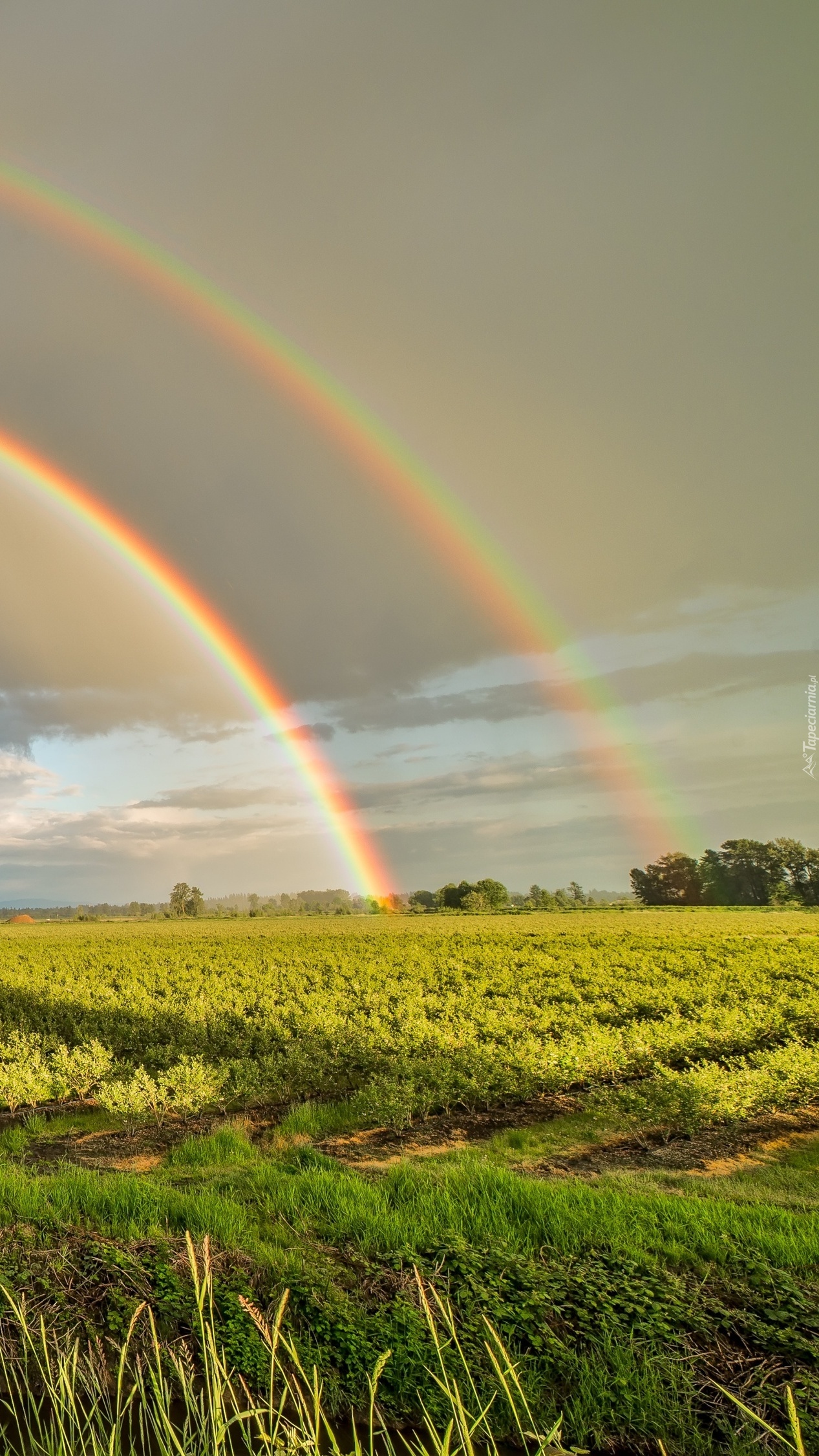 Edytor tapety: Tęcza nad zielonymi polami
