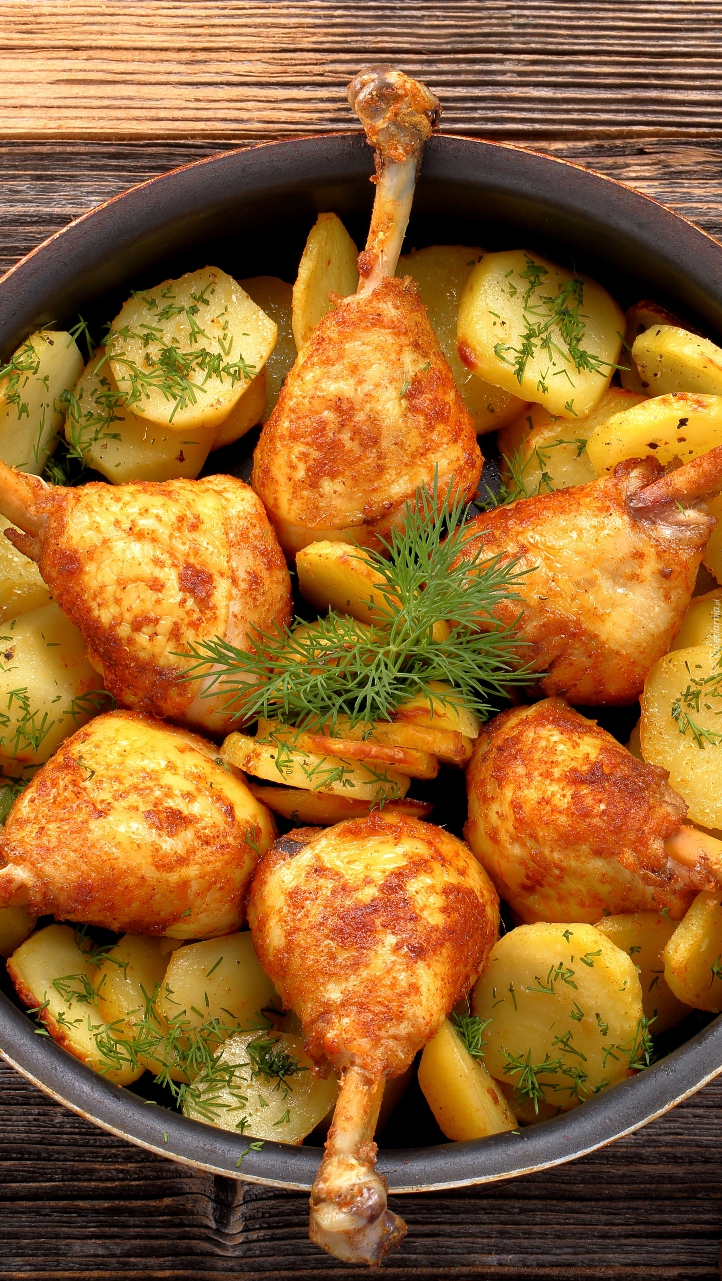 Edytor tapety: Udka kurczaka z ziemniakami na patelni