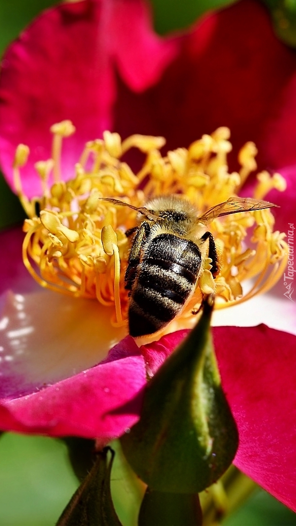 Edytor tapety: Pszczoła na pręcikach dzikiej róży