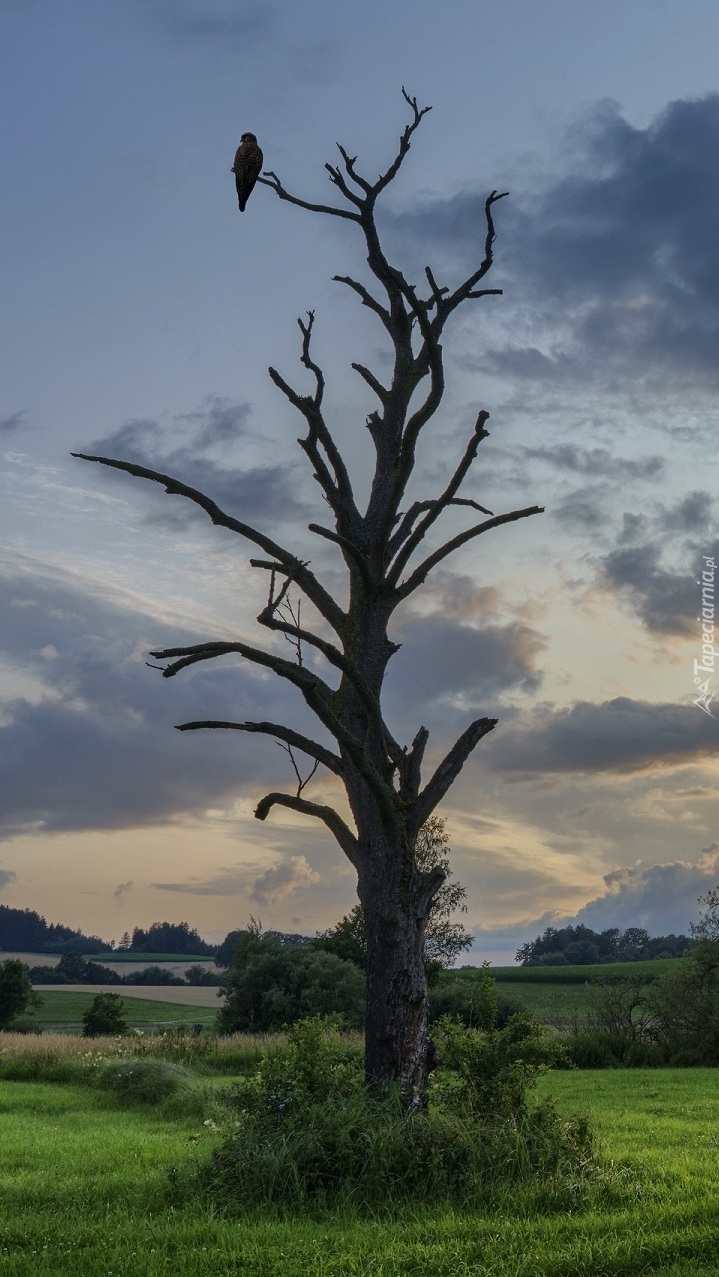 Edytor tapety: Ptak na gałęzi uschniętego drzewa