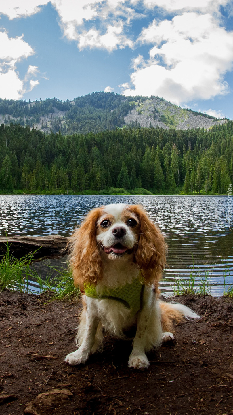 Edytor tapety: King charles spaniel nad rzeką