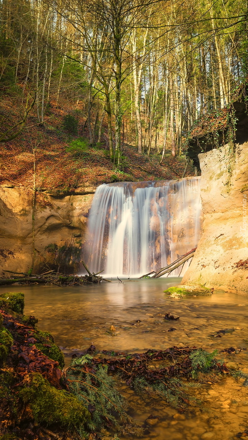 Edytor tapety: Skalny wodospad w lesie