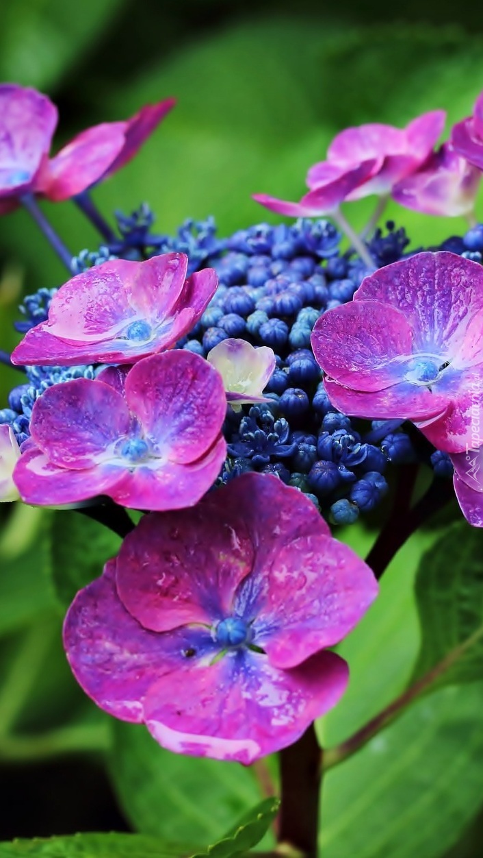 Edytor tapety: Zaczyna kwitnąć różowa hortensja