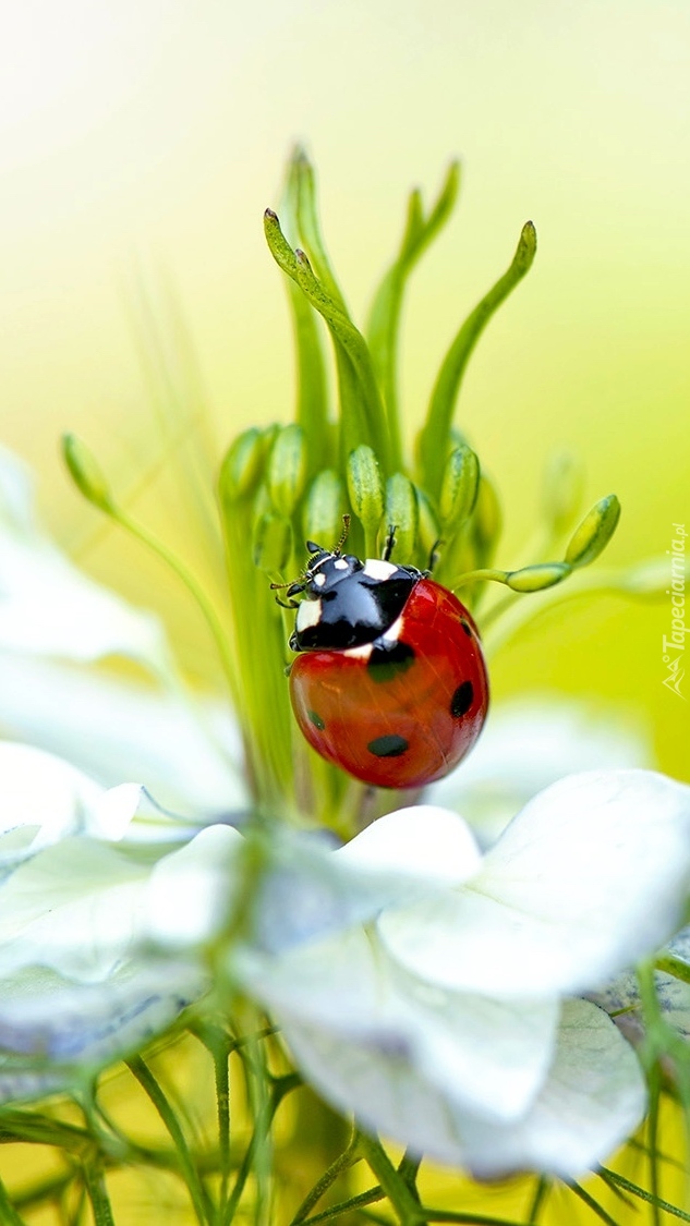 Edytor tapety: Biedronka na kwiatku czarnuszki