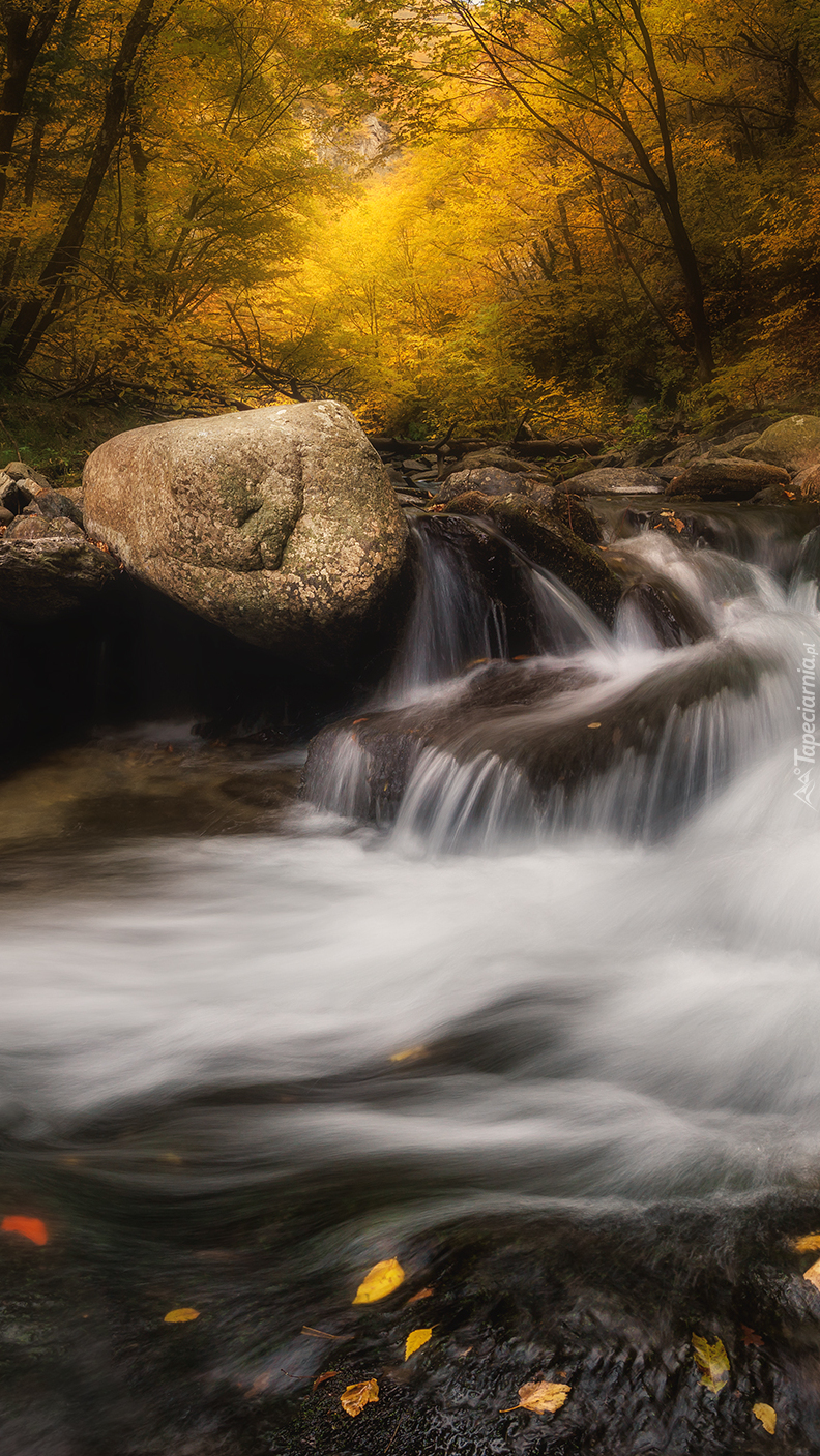 Edytor tapety: Kamienista rzeka w jesiennym lesie