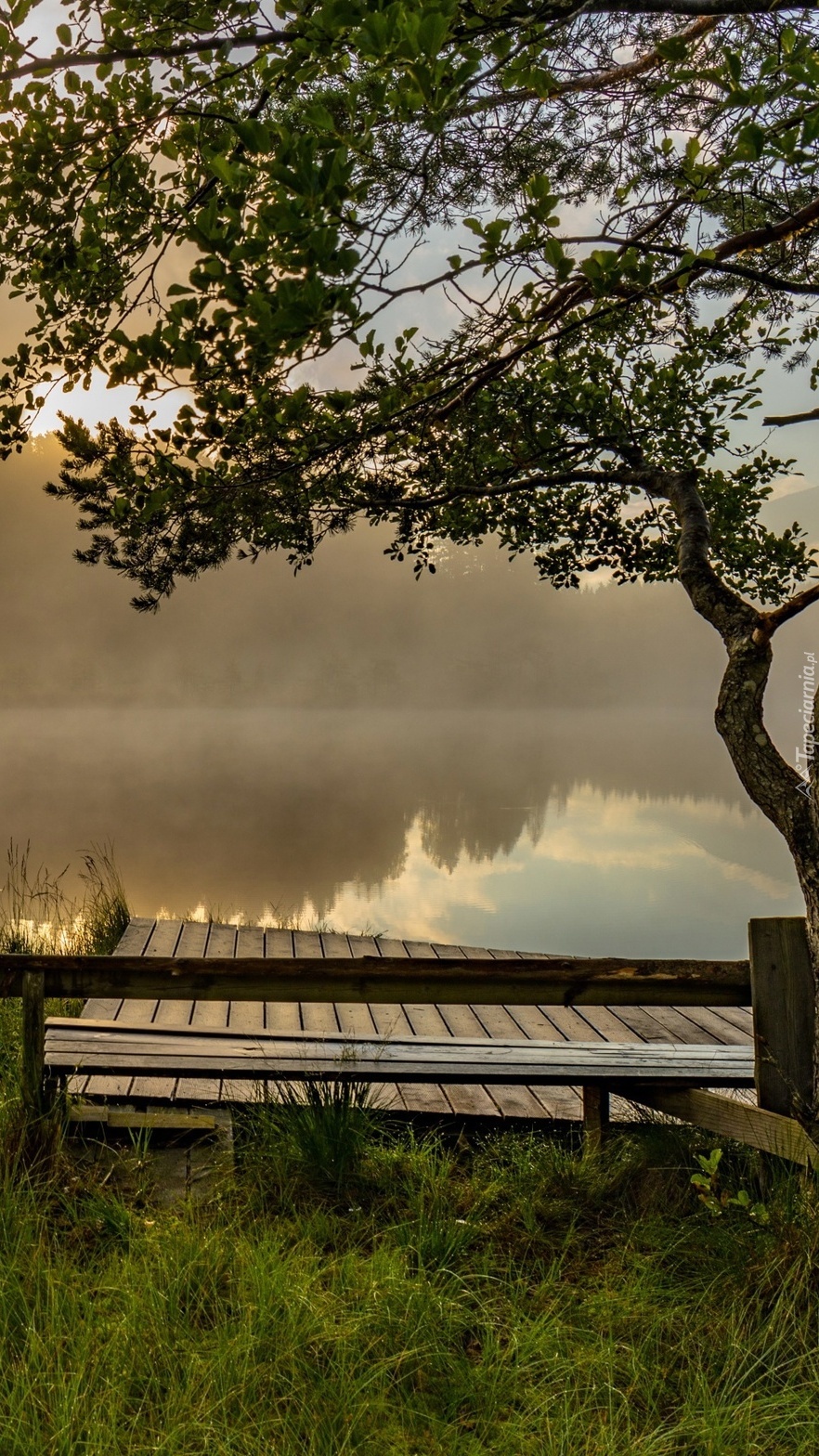 Edytor tapety: Pomost nad jeziorem o poranku