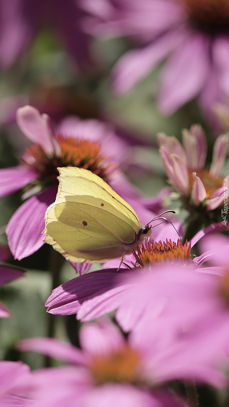 Edytor tapety: Motyl cytrynek na różowej jeżówce