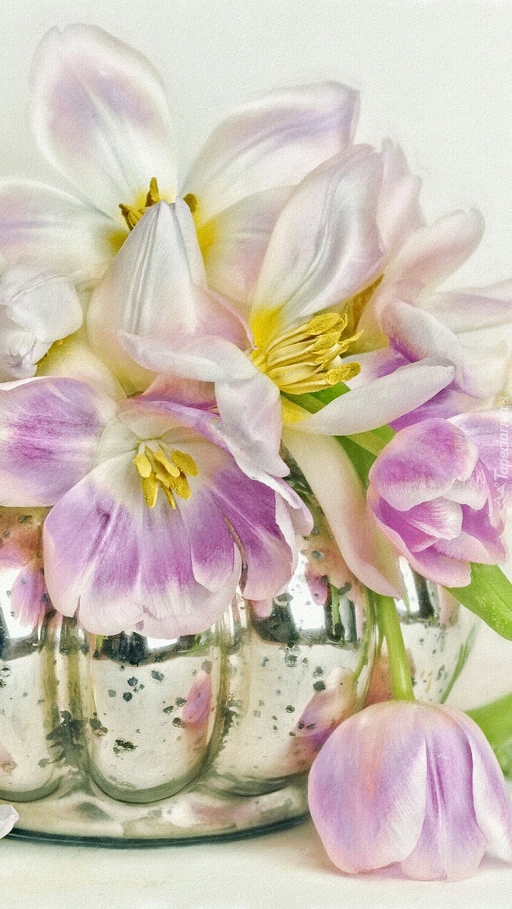 Edytor tapety: Wazon z rozwiniętymi tulipanami w grafice