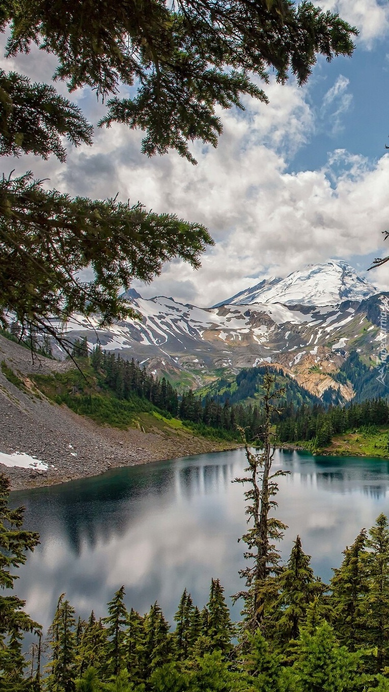 Edytor tapety: Świerki nad jeziorem