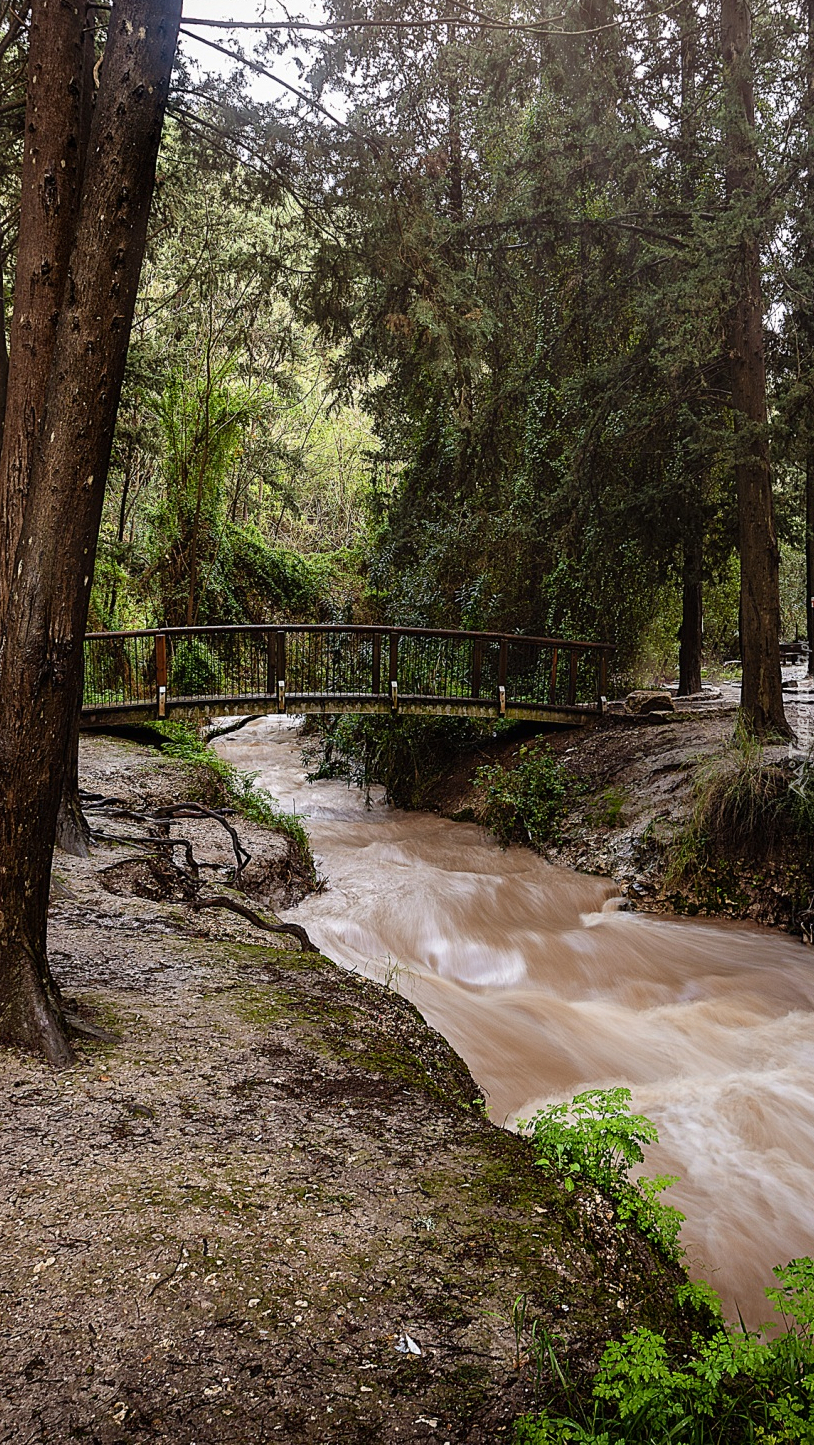 Edytor tapety: Mostek na rzece w lesie