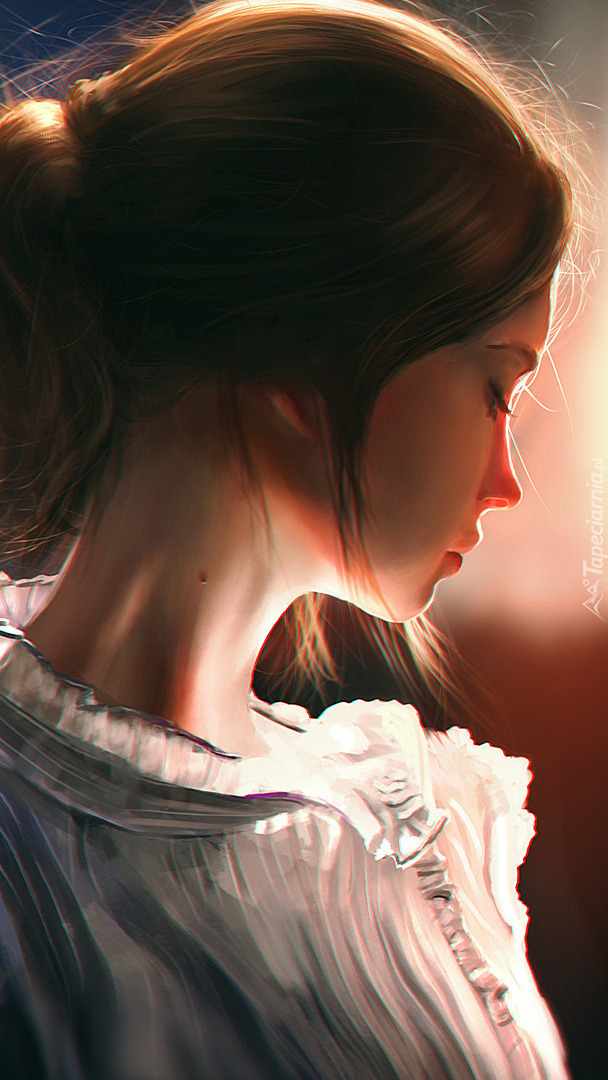 Edytor tapety: Grafika kobiety w białej bluzce