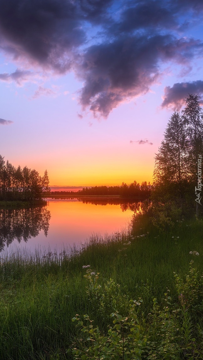 Edytor tapety: Zachód słońca nad rzeką i drzewami