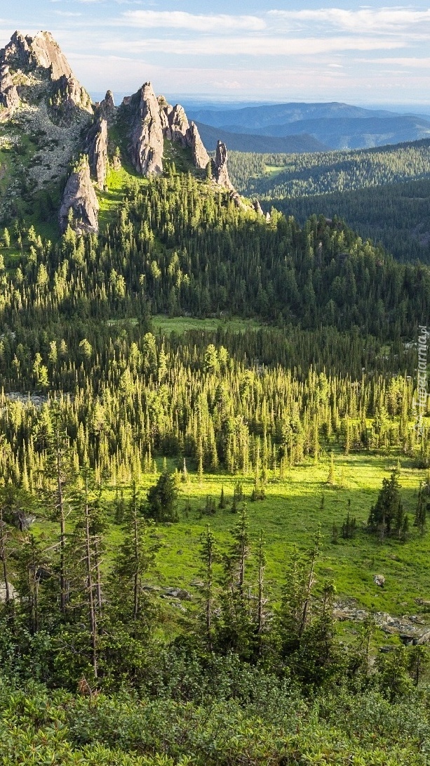 Edytor tapety: Drzewa u podnóża skał