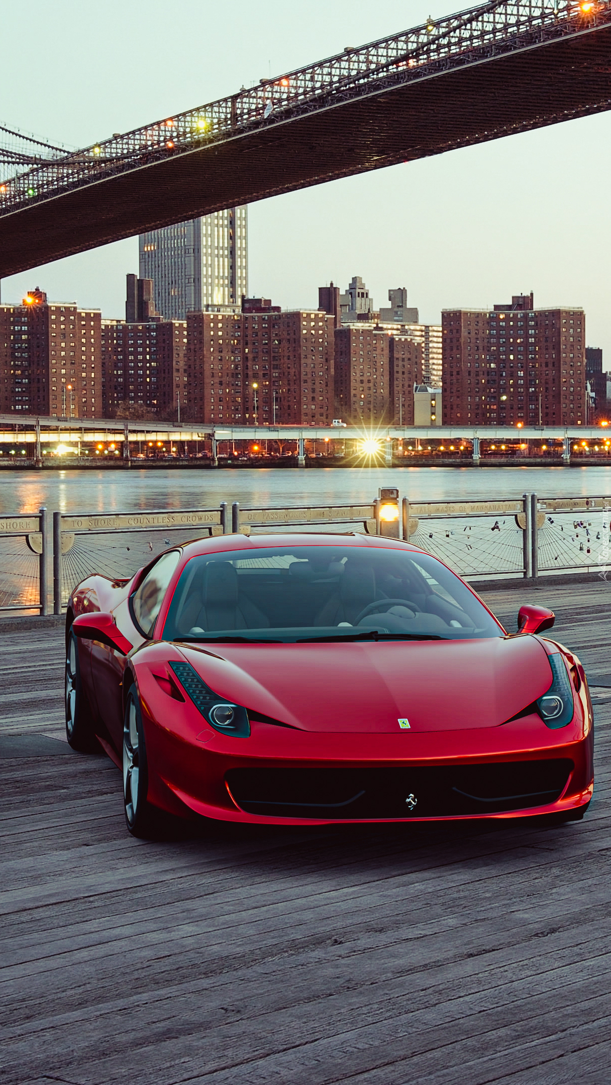 Edytor tapety: Czerwone Ferrari po mostem