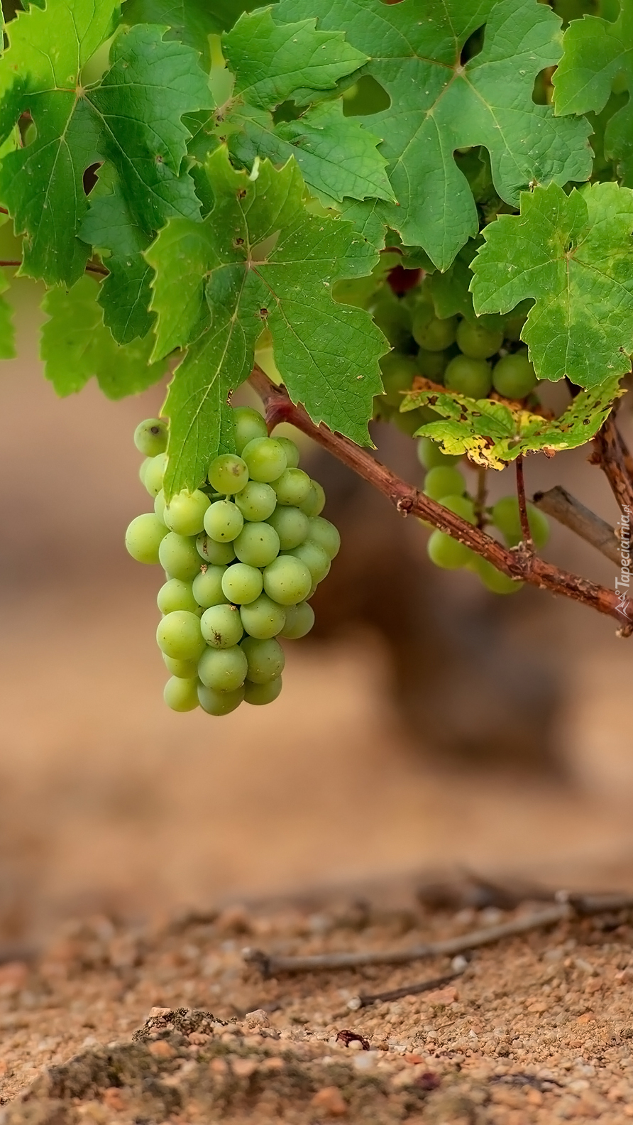 Edytor tapety: Kiść zielonych winogron na gałęzi