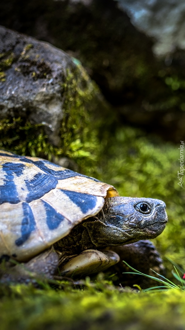 Edytor tapety: Żółw obok kamienia na trawie