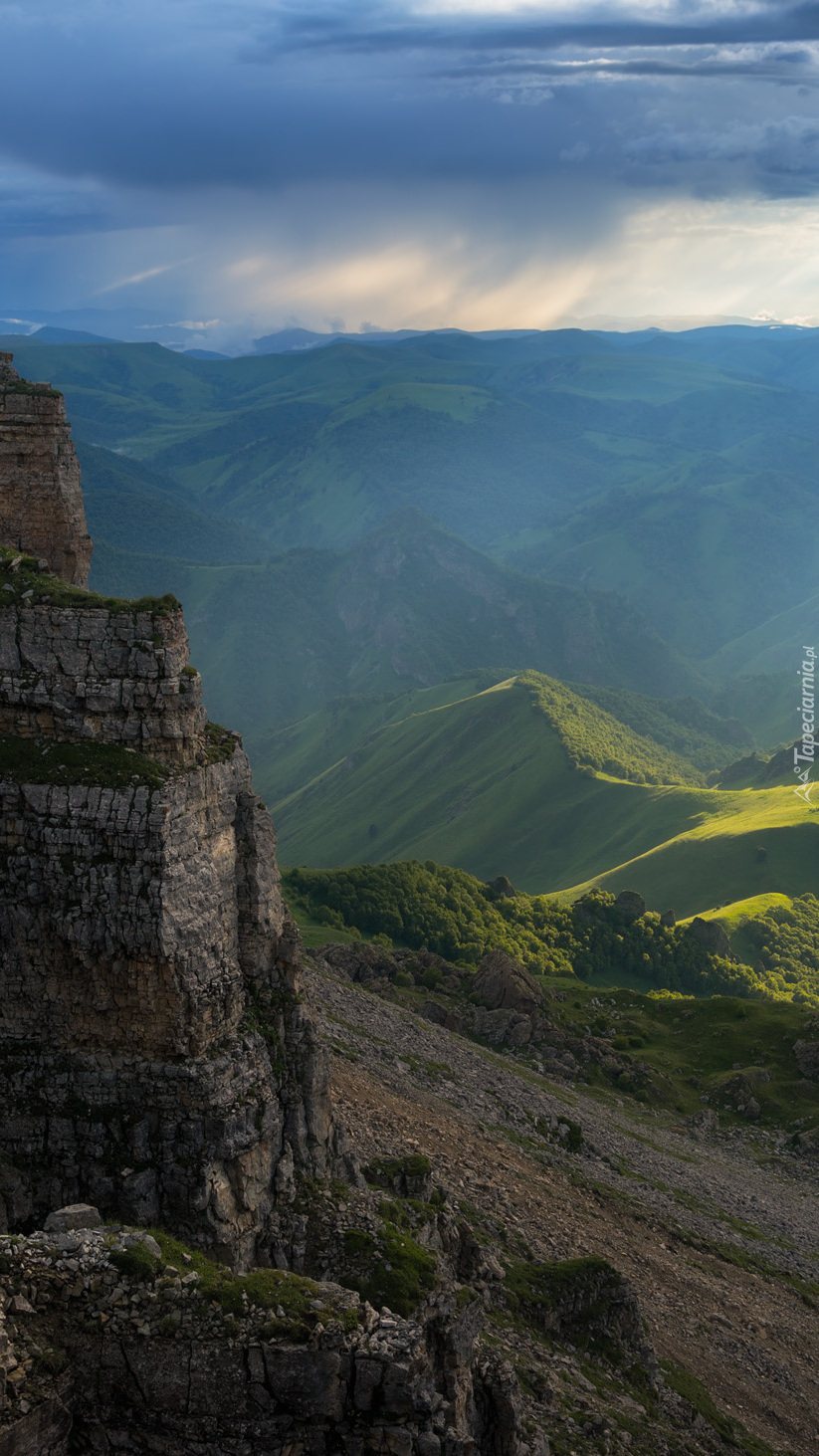 Edytor tapety: Widok ze skały na zalesione góry