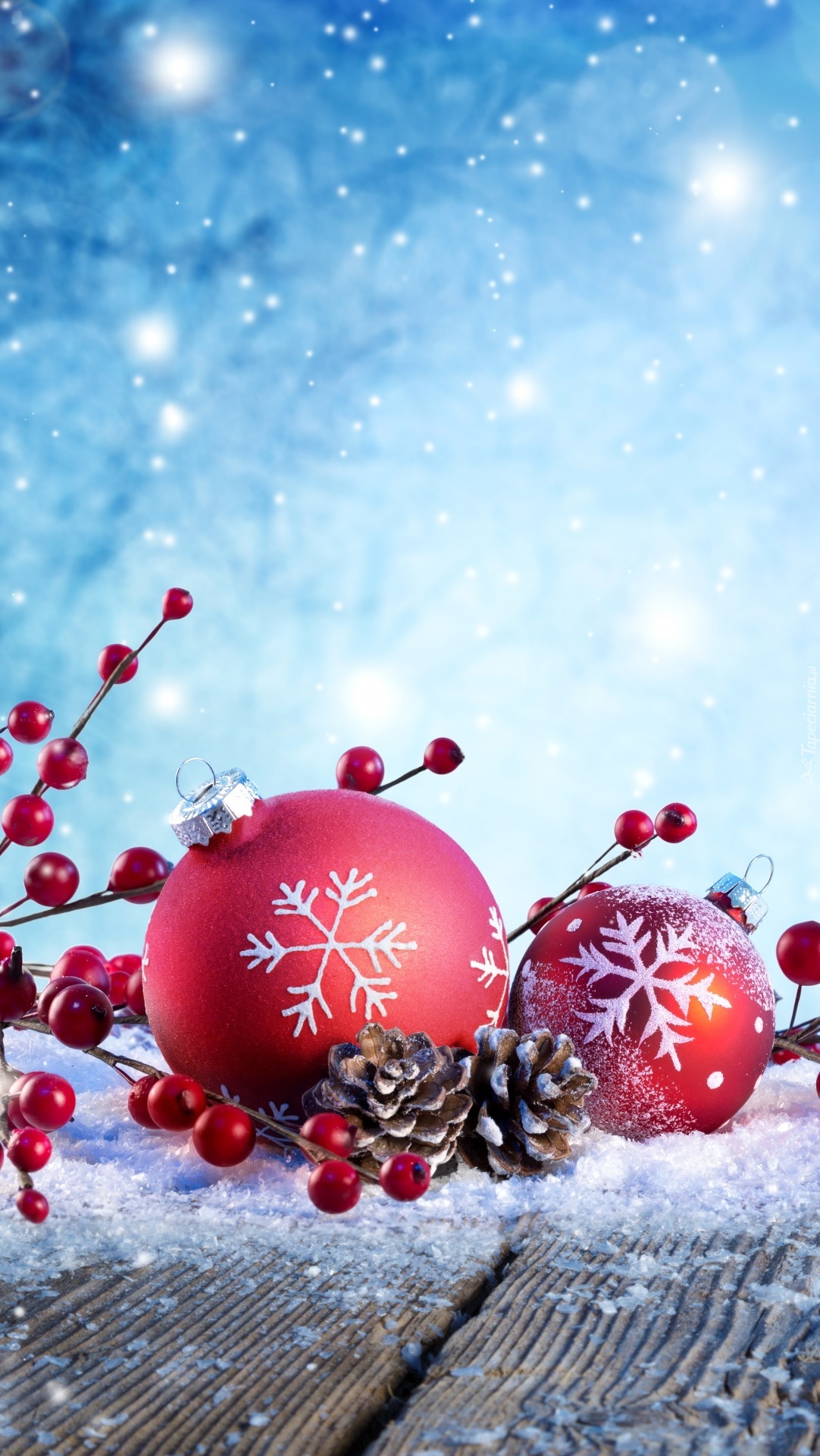Edytor tapety: Bombki w śnieżnej dekoracji